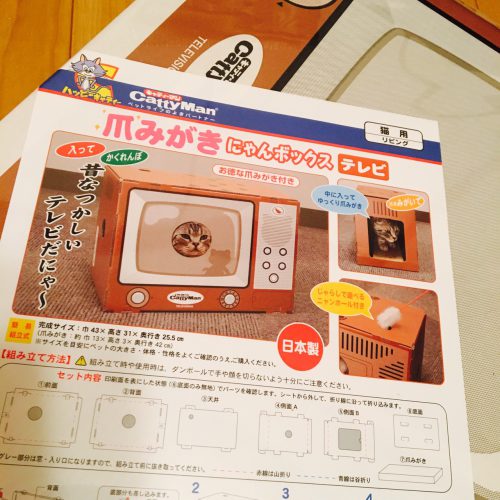2017/11/24fri 引っ越し祝い 種田 亜純 日記 こんにちは、種田です。引っ越し祝い(?)に、猫たちにこんなものを買ってみました。 爪みがきです(^^)/テレビを模したボックスの中に爪とぎを入れるみたいです。組み立てる前から猫も興味津々です。 とりあえず完成( `ー´)ノ 早速中に入ってくれました。頭隠して尻隠さずです。最初は興味を持ってくれなかったらどうしよう、と思っていましたが2匹ともくつろいでくれていたので買ってみてよかったと思いました( *´艸`) 家づくりのデザインカタログ無料でプレゼント! 大人気の「暮らしと家」建築実例カタログです。 資料請求ページへ このブログを書いたスタッフ 種田 亜純 このスタッフのブログ一覧へ Prev New York・Boston視察⑥ Next 広島 スタッフブログ一覧へ戻る