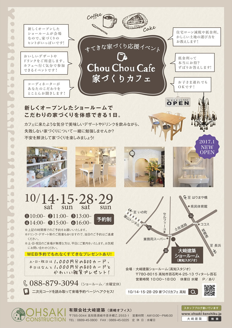 《10/14(土)・15(日)・28(土)・29(日)》高知市百石町ショールーム 家づくりカフェ開催