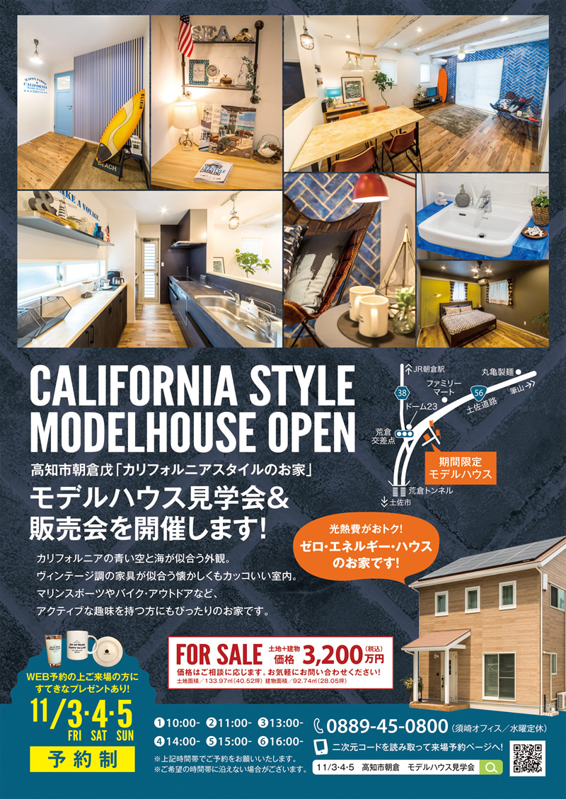 《11/3(金)・4(土)・5(日)》 高知市朝倉 カリフォルニアスタイルの家 モデルハウス完成見学会&販売会