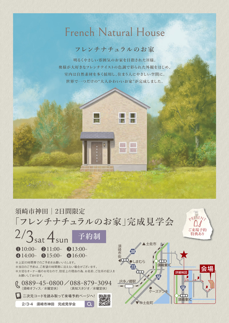 《2/3(土)・4(日)》須崎市神田「フレンチナチュラルのお家」完成見学会
