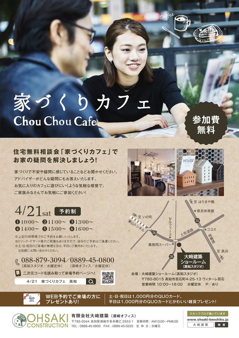 《4/21(土)》 高知市百石町ショールーム 家づくりカフェ開催